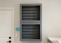 Upon completion of the installation, the new laundry room is an absolute head turner! Packed with all the bells and whistles, the room features painted MDF doors with a shaker bevel design and lustrous quartz countertop. The real showstopper, however, is the dedicated drying unit. The custom design features a drop-down drying rack that allows you to simply hang clothes to dry and can be stored upright to keep it out of the way when not in use.